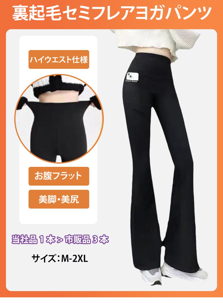 裏起毛セミフレアヨガパンツ