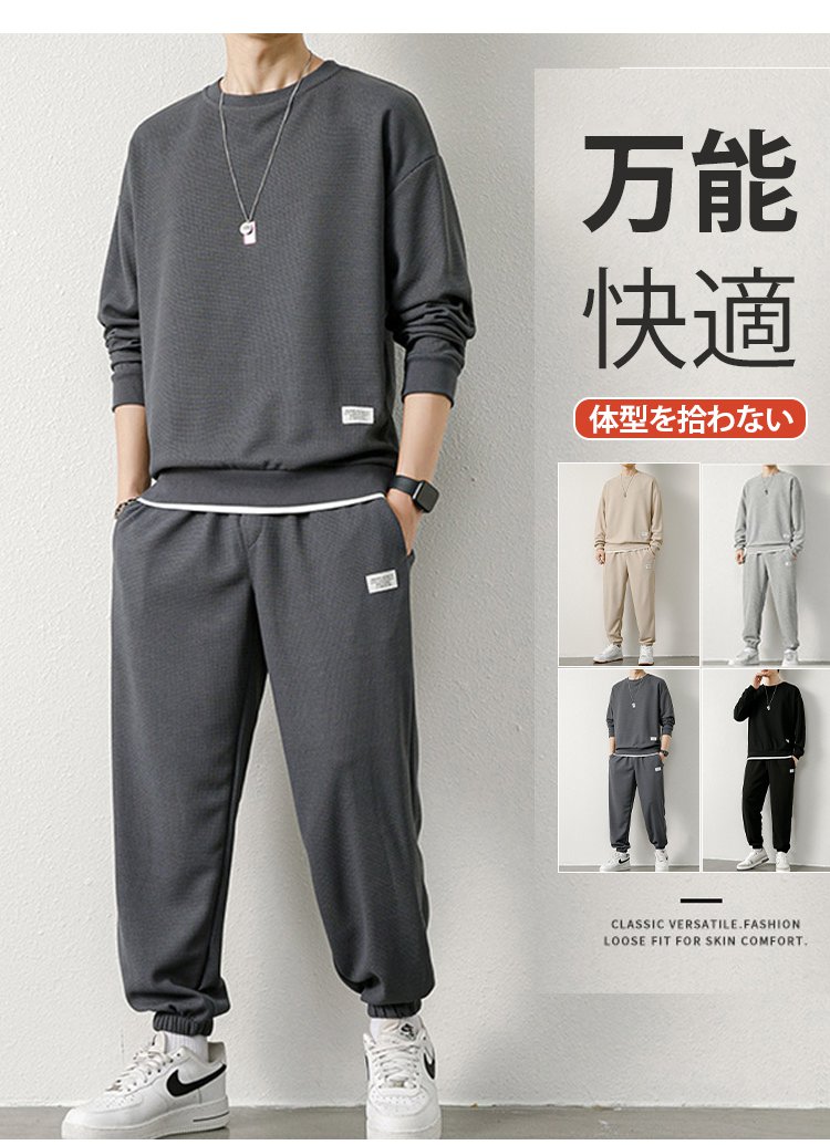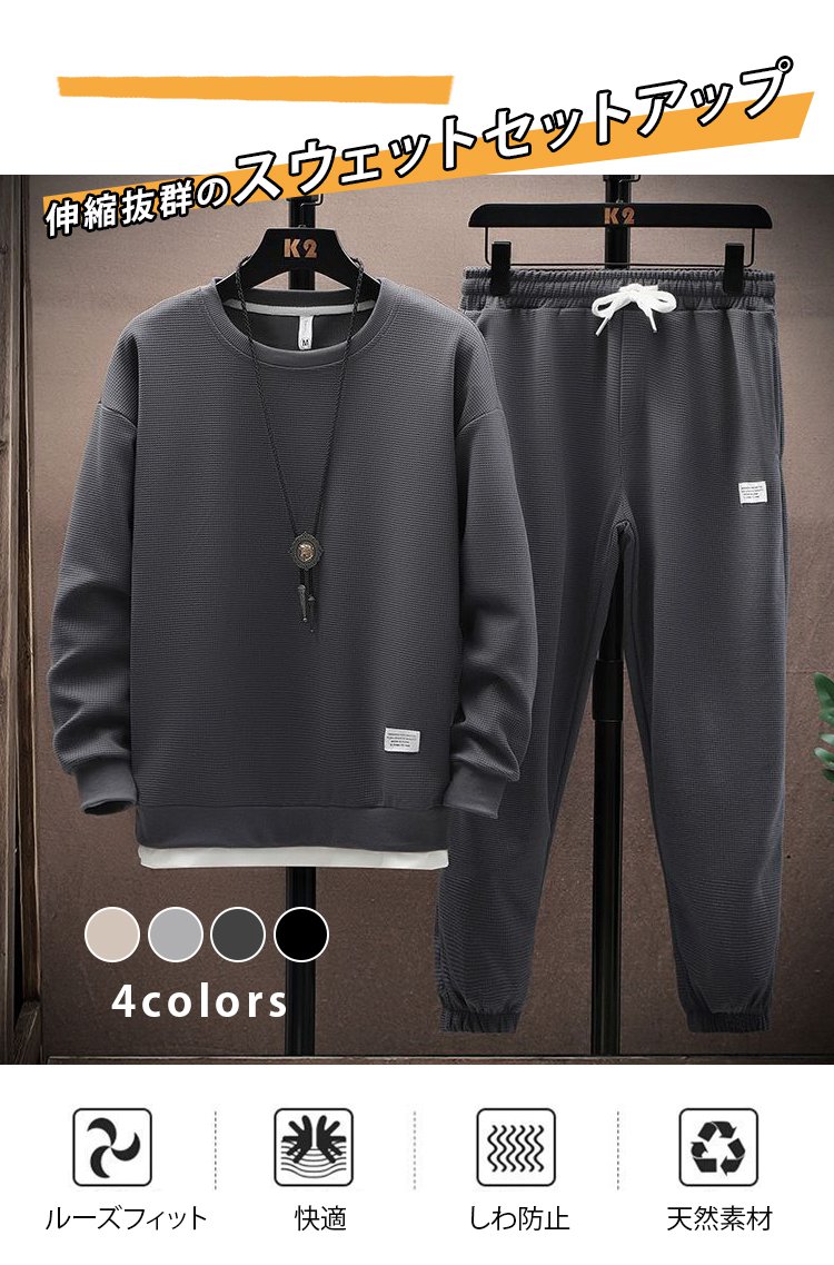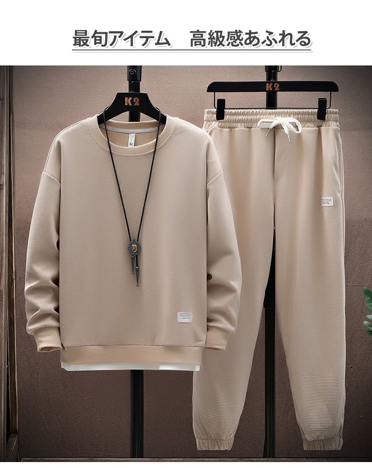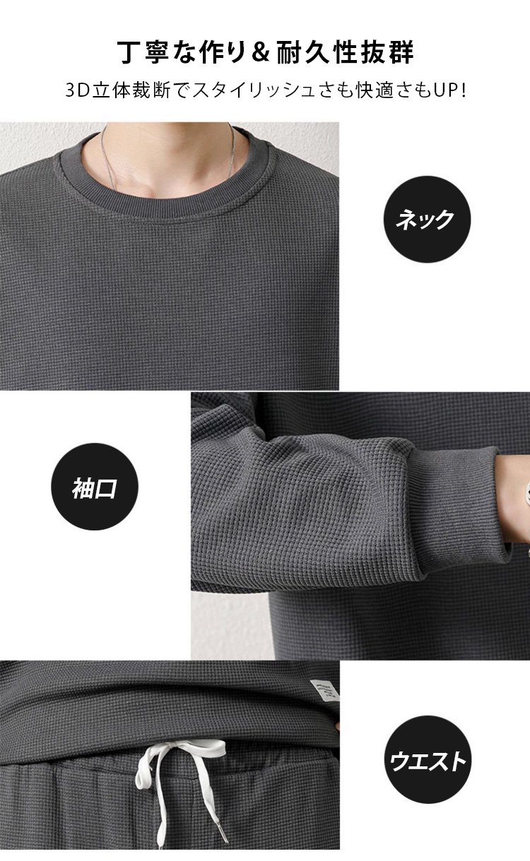メンズ長袖ワッフルセットアップ